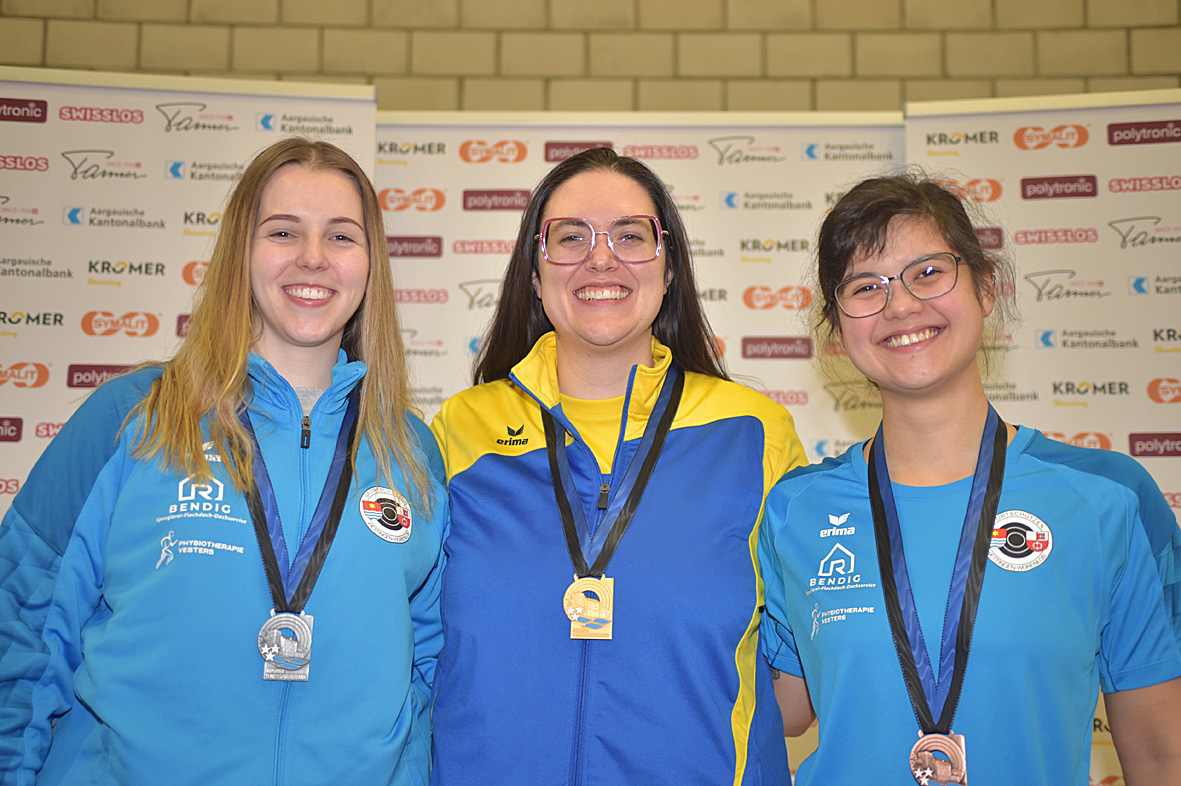 Im Qualifikationsmatch der Elite-Frauen hatte Titelverteidigerin Selina Suter-Koch 4,6 Punkte vor Christiane Keller das Bestresultat erzielt. Aber im nervenaufreibenden Finaldurchgang wechselte die Szenerie. In den ersten 20 Schüssen duellierten sich Suter und die Qualifikationsdritte Darunee Frossard. Christiane Keller kam aber immer besser in Fahrt und übernahm ab dem 21. Schuss die Führung. Allerdings lag das Spitzentrio zu diesem Zeitpunkt nur gerade um einen Zehntelspunkt auseinander. Jetzt riss aber der Faden bei Frossard, die sich mit Bronze begnügen musste. Nach 22 Schüssen lag Keller 0,6 Ringe vor Suter. Keller genügten schliesslich 10,1 und 9,7 Punkte für ihre ersten Aargauer Einzelmeistertitel, weil Suter „nur“ 9,5 und 9,2 erzielte. „Bis zu den letzten zwei Schüssen hatte ich meine Nervosität gut unter Kontrolle, dann beganns zu zittern“, schilderte die 30-jährige Spitzenschützin der Sportschützen Muhen ihren Weg zum grossen Sieg. „Zuletzt passte es bei mir nicht mehr“, gestand die um 1,7 Punkten geschlagene Selina Suter. Frossard wiederum, die ebenfalls noch mit dem Sieg liebäugeln konnte, erklärte: „In den letzten Schüssen stimmte bei mir der Rhythmus nicht mehr.“