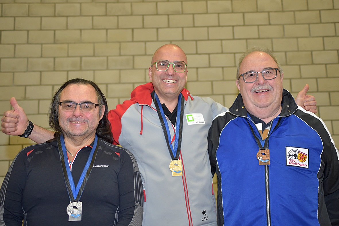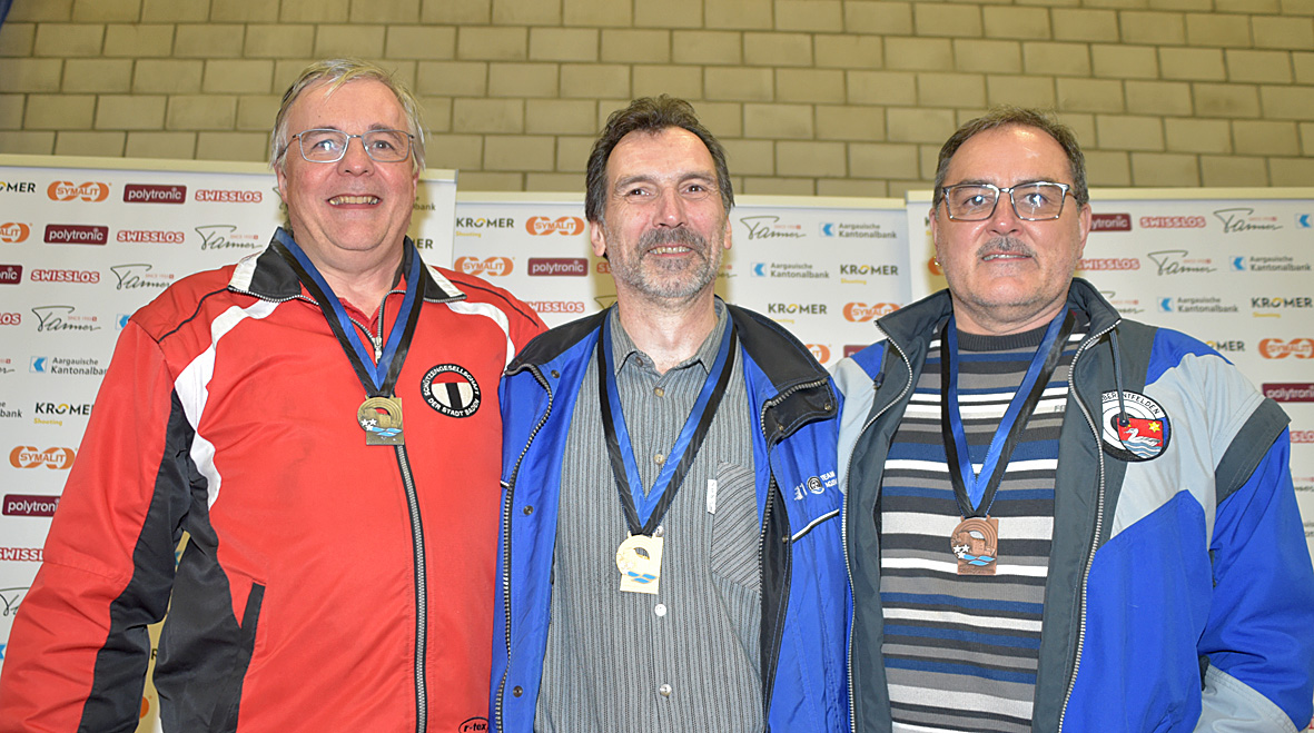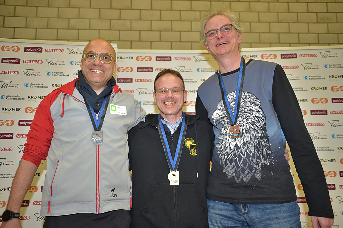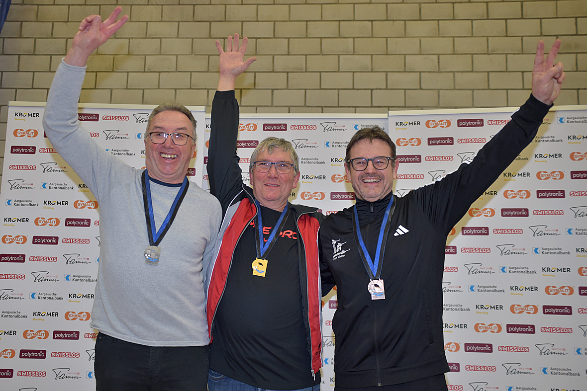 Im 40-Schuss Wettkampf der Veteranen schnappte sich der Murgenthaler Stefan Vögele mit 369 Punkten souverän vor Jean-Marc Wolfgang (Baden/362) und Raphael Levy (Oberentfelden/351) die Goldmedaille.