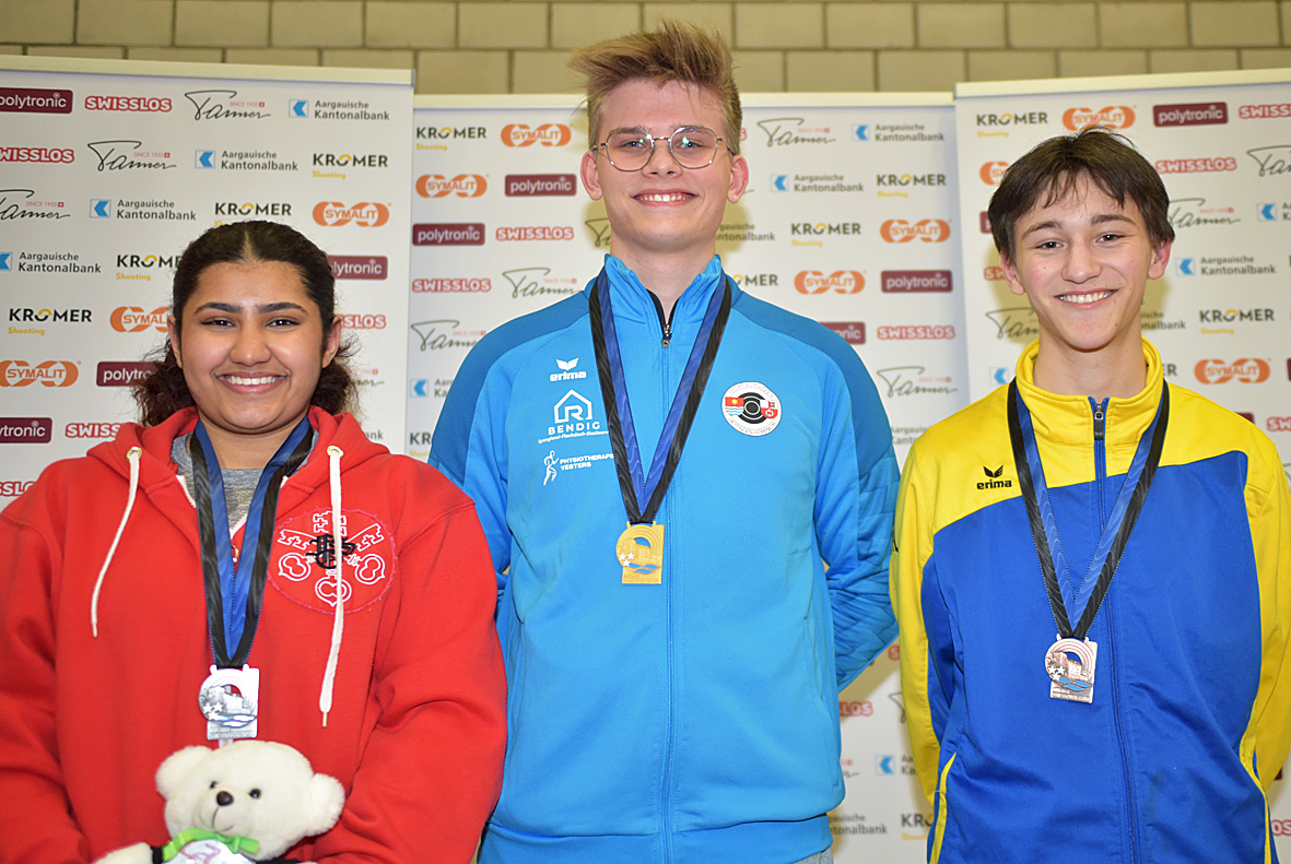 Die U21-Qualifikation gewann Shruti Alexander vom SSV Obersiggenthal mit 597,3 Zählern. Im Final setzte sich dann allerdings Adrian Fischer von den Sportschützen Wettingen-Würenlos klar vor Shruti Alexander und Felix Frey durch. In den unteren Nachwuchskategorien ohne Final ging Ayleen Schweizer in der U17-Konkurrenz buchstäblich mit dem letzten Schuss als Siegerin hervor. Das Talent von den Sportschützen Muhen gewann einen halben Punkt vor Vereinskollegin Chloé Peter. Margarita Papini vom SSV Obersiggenthal erlebte eine herbe Enttäuschung. Der 40. und letzte Schuss missriet ihr, und sie fiel so nach langer Führung noch auf Platz 3 zurück. Ein Happy End gabs hingegen für den SSV Obersiggenthal im U15-Feld. Da schoss Thelma Stadelmann mit drei Zehntelpunkten Vorsprung auf Laurin Brozzo von den Sportschützen Wettingen-Würenlos und Eleonora Sureta (SpS Buchs) obenaus.
