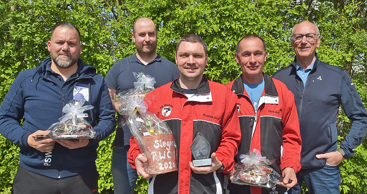 Das Siegerbild des 19. Röbi-Wüest-Cups: (von links) Elias Zois (3.), Daniel Dennler (2.), Sieger Thomas Vock, Patrik Hunn (4.) und Organisator Robert Wüest. (Foto: wr)